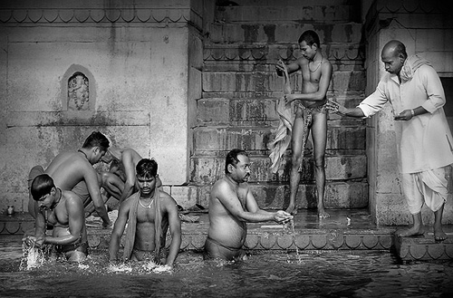 Ablutions rituelles dans le Gange, Varanasi (Benarès), Inde 1999