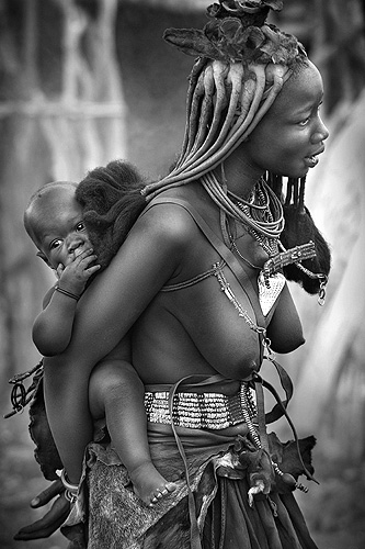 Femme Himba portant son bébé, Kaokoland, Namibie 2015