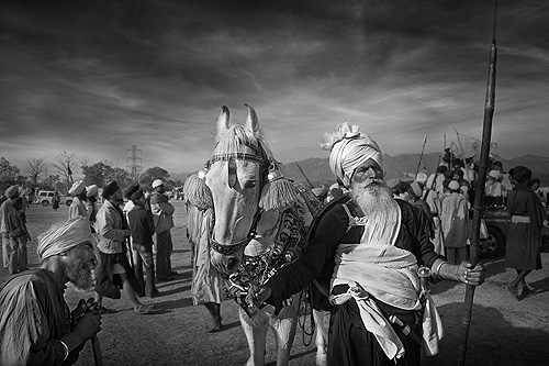Nihang tenant son cheval, Festival de Holla Mohalla, Punjab, Inde 2009