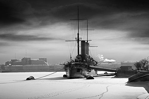 Croiseur Aurore dans les glaces, St Petersbourg, Russie 2017