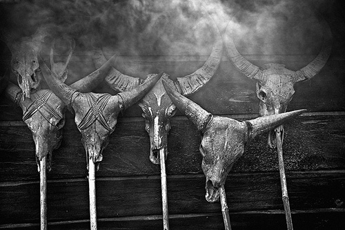 Inde, Nagaland - Trophées de Mithuns - Pochury