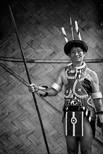 Inde, Nagaland - Homme en tenue de guerrier - Tribu Sangtam