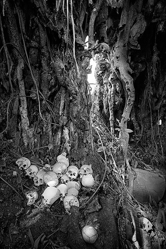 Inde, Nagaland - crânes dans un arbre creu - Tribu naga Konyak