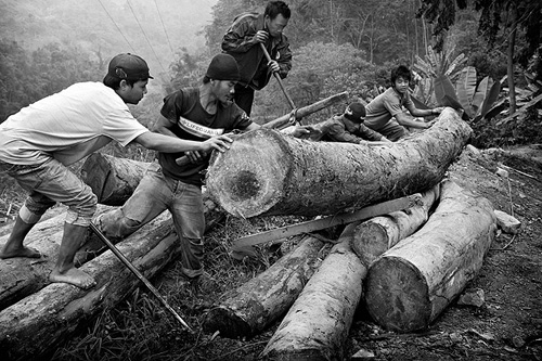 Inde, Nagaland - Chargement de grumes - Tribu naga Phom