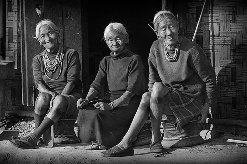 Inde, Nagaland - Vieilles Femmes - Tribu naga Konyak